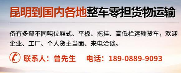 昆明曾辉货运承接国内各地整车、零担运输、轿车运输、长途搬家、大件运输等业务。成立至今始终以客户为中心,为客户提供优质、高效的服务。 备有多部不同吨位厢式、平板、拖挂、高低栏运输货车,欢迎企业、工厂、个人货主当面、来电洽谈。安全运输,快捷直达,我们将珍惜您的所托,稳如亲送! 在今后的发展道路中,我们将在诚信互利的基础上与各界新老客户携手合作,共同发展!
