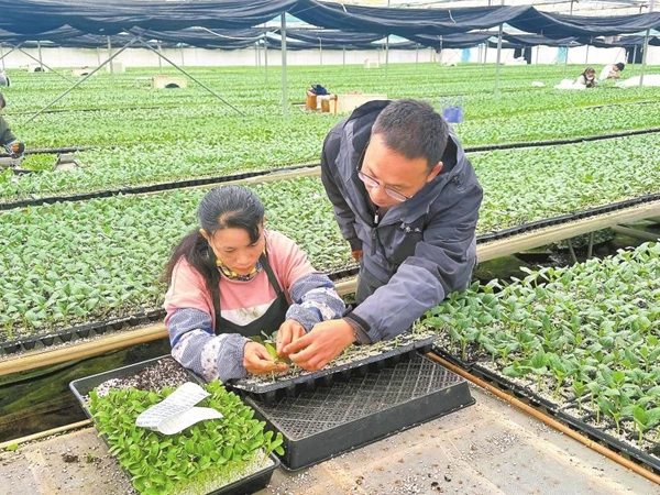 在大理百利农业发展有限公司春晓种苗基地的工厂化育苗温室中,工人们正有条不紊地为黄瓜幼苗完成南瓜砧木嫁接作业。这看似简单的一步,却是提升蔬菜产能的关键一环&mdash