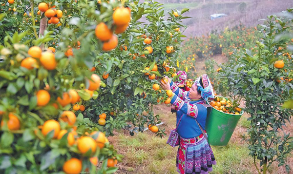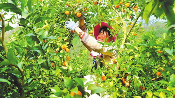 师宗县务工群众采摘砂糖橘。通讯员 袁燕坤 摄