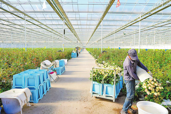 冬日暖阳下,丽江现代花卉产业园内无土栽培的48种月季与18色马蹄莲活色生香,35万平方米玫瑰馥郁芬芳,冷链物流车有序运作。产业园以智能温室、全链条数字化管控为