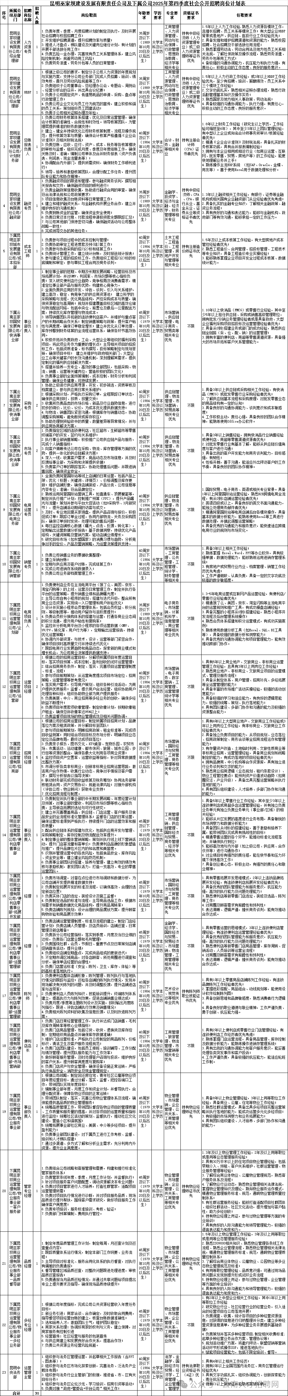 本次公开招聘23个岗位31人,具体招聘岗位、任职资格条件等详见:附件1《昆明巫家坝建设发展有限责任公司及下属公司2025年第四季度社会公开招聘岗位计划表》。