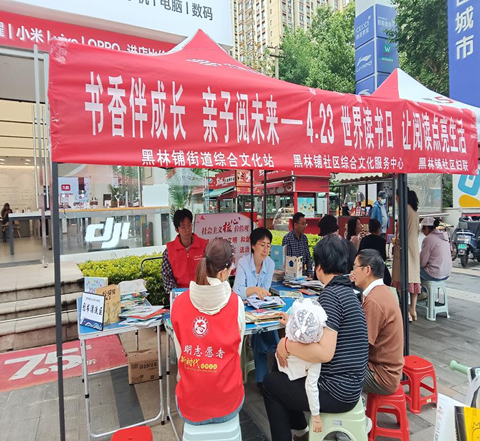 为深入推进全民阅读,加强家庭文明建设,以书香涵养社区新风尚,在“4·23世界读书日”来临之际,依托4月20日全民阅读周启动契机,黑林铺街道综合文化服务站、黑林铺社区党委、社区综合文化服务中心联合社区妇联,开展“书香伴成长,亲子阅未来”主题宣传活动。活动以亲子阅读为载体,引导广大家庭陪伴孩子养成良好阅读习惯,积极营造全民阅读浓厚氛围,让阅读点亮居民生活,助力家庭文明建设与社区文化发展。