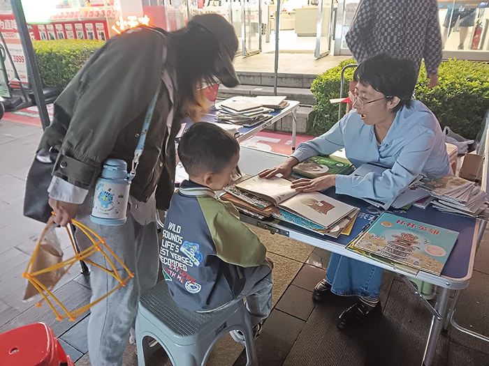 活动现场内容丰富、形式多样。社区邀请专业阅读指导老师现场授课,手把手指导家长掌握科学亲子阅读方法,破解日常阅读陪伴难题;老师生动讲解绘本故事,带领孩子们走进趣味阅读世界;套圈赢绘本、故事问答送阅读积分册等趣味互动环节,让孩子们在玩乐中感受阅读乐趣,有效调动参与积极性。现场还设置书籍借阅、绘本漂流专区,发放书籍推荐清单,推动社区室内图书资源流动共享。同时,活动组建线上亲子阅读打卡群,按年龄段推荐绘本、名人故事、励志类书籍,倡导每日半小时亲子阅读,并教授家长撰写鼓励贴,以正向激励陪伴孩子健康成长。