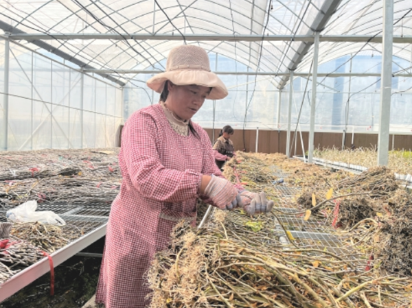 全县围绕“企业发动、大户带动、农户主动种植”的思路,创新联农带农利益联结机制,推行“企业+合作社+农户”“党组织+基地+农户”模式,实施包种苗、包规划、包技术、包指导、包回收的“五包”服务,免费供苗、上门指导、保底收购,解决农户“种不好、卖不掉、风险大”难题。通过“庭院石斛”“房前屋后种斛”等轻简模式,盘活闲置空间,让农民在家门口就业增收。目前园区已带动88个村(社区)形成规模种植,年产鲜条1.35万余吨,在8~10年的种植周期内,年均可实现亩收益两万余元。