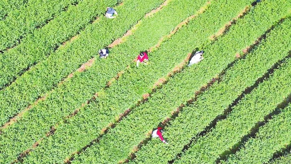 村民在茶园采茶。通讯员 唐欢 摄